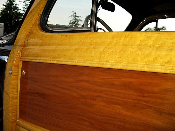 The feature on this car that Mr. Ford requested and is considered “special” is the all “bird’s eye” maple body that was custom built by the Ford woodworkers in Iron Mountain. In 1942, the factory only built one all “bird’s eye” Mercury. Normally, 4 or 5 were built in a model year for dignitaries and vice presidents, but because of the shortened production year, only one was built. The wood is all original except for the gumwood panels which had to be replaced because of damage. Locating gumwood panels alone is a story in itself. The original gumwood panels which were retained, have the words “Special Bird’s Eye Job” written on the inside skin.