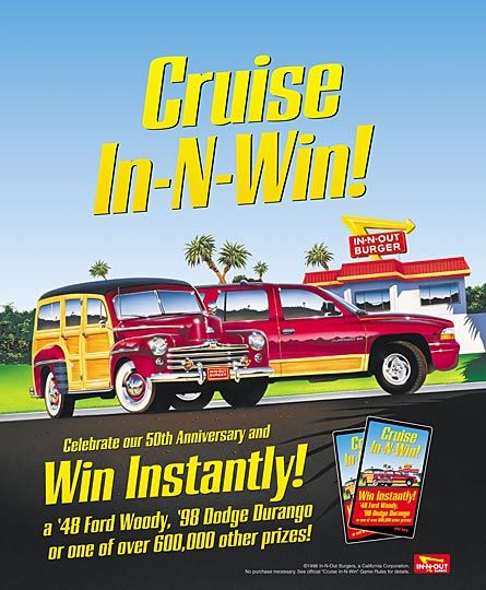 In 1998, In-N-Out Burger promoted their 50th anniversary by conducting a scratch and win game. Every time a customer purchased a food product, he or she received a game card to scratch off and possibly win a prize.